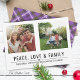 Peace, love & family holiday card features 2 of your favourite photos in modern typography.