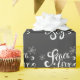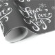 Customizable holiday gift wrapping paper featuring whimsical script of "PEACE, LOVE AND JOY" and a chalkboard background.
