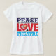 State what's really important to you with this shirt featuring the words "Peace, Love, and Theatre". The letter "c" in the word peace is substituted with a peace sign, while the heart standing in for the letter "O" in love, contains the traditional comedy and tragedy theatre masks. Great for the star of any stage. Available with matching products.