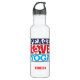 State what's really important to you with this Liberty sports bottle featuring the words "Peace, Love, and Yoga". The letter "c" in the word peace is substituted with a peace sign, while the heart standing in for the letter "O" in love, contains a silhouette of a woman doing a yoga pose. Add a name or any message underneath. Available with matching products.