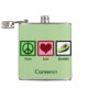 A peace sign, heart, and a delicious green avocado. The perfect personalized drinking flask gift for a vegetarian, vegan, or a foodie.