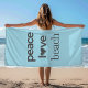 Peace Love Beach Coastal Ocean Blue Graphic Print Towel