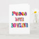 Share your love for bowling with this shiny blue design saying Peace Love Bowling. Great gift for a bowler.