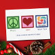 These cute customizable business logo holiday cards feature your company insignia next to a pretty green peace sign and red heart for Christmas. Personalize with your professional logo and other custom text for company marketing.
