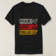 A colourful and whimsical design featuring a cello surrounded by symbols of peace and love. Perfect for musicians and music lovers alike.