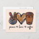 Crafted with love and attention to detail, these postcards make a thoughtful gift for any coffee lover in your life. Add them to your stationery collection, send them as motivational pick-me-ups, or frame them as mini works of art to adorn your walls. Embrace the warmth of a good cup of joe and spread the love with our "Peace, Love, Coffee" postcards today!