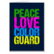 Un joli cadeau de garde colorée pour quelqu'un qui joue le drapeau en tournant avec le groupe de marche à l'école. Peace Love Color Guard est écrit en vert, rose chaud, bleu et jaune néon.
