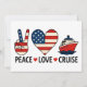 Peace sign, heart and cruise ship. A playful cruise theme for ocean lovers and fans of relaxed USA vacation vibes. Inspired by sunny getaways and freedom at sea.