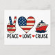 Peace sign, heart and cruise ship. A playful cruise theme for ocean lovers and fans of relaxed USA vacation vibes. Inspired by sunny getaways and freedom at sea.