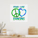 Dancers can share their feelings with this fun retro design with a peace sign, heart, and the words - Peace Love Dancing.