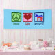 This cute democratic party banner features a cool liberal design of a peace sign, heart, and red, white, and blue donkey.