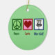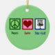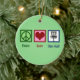 A cute disc golfing Christmas gift featuring a peace sign, heart, and flying disc golf baskets used by a golfer. Cool disc golf course present.