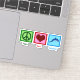 Cute dolphin sticker with a pretty blue dolphin next to a heart and a peace sign on a beautiful ocean animal present. Peace Love Dolphins.