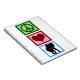 A green peace sign, red heart, and a beautiful elephant silhouette in black. A very cute gift for people who like pretty animals.