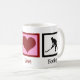 Peace sign, heart, and a silhouette of a field hockey player in action.