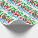 Peace Love Football. Cute personalized blue Christmas wrapping paper for a football player or coach. This cool sports pattern is green, red, and blue with the ball in the centre.