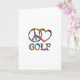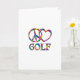 Have some retro fun and share your love for golf with this colourful design with an interlocking peace sign and heart and the word - Golf.