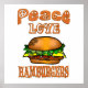 Hamburger lovers will enjoy this fun delicious looking design with a hamburger and the words - Peace Love Hamburgers.