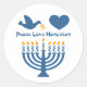 Festival of Lights Hanukkah design that says PEACE LOVE HANUKKAH with a dove and olive branch, heart and lit menorah. PinkInkArt original!