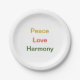 Peace love harmony gold tone red green paper plate