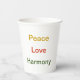 Peace Love Harmony in gold colour, red, and green. This is a nice saying for the holiday season or any time of the year. Minimalist.