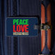 A cute gift for someone who loves their pet hedgehog featuring the words PEACE LOVE HEDGEHOGS in green, red, and tan.