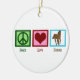 A peace sign, heart, and a beautiful horse running. The perfect Christmas ornament for an equestrian. Personalize this gift with your own text on the back.