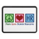 Cute human resources department trailer hitch cover for an HR manager at a company or business. Peace Love Human Resources.