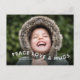 Wish your friends and family a Merry Christmas with our Peace Love Hugs Curvy Photo Holiday Postcard. The back is a mailable postcard with room for a longer holiday message.