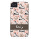 Show your love for ice skating and figure skating with this pretty in pink and brown peace symbol, heart and skates iPhone 4 / 4s Barely There Case-Mate cover and case for her. Personalize it with your name on the PRINTED ribbon look design. This makes a pretty gift for a figure skater or skating coach. Artwork © Chrissy H. Studios, LLC. All Rights Reserved.