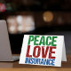A cute insurance agent Christmas gift featuring green, red, and blue letters that read Peace Love Insurance. Great gift for your insurance company co-workers.