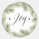Peace Love Joy Christmas Round Sticker. Pine Cone theme. Customizable. Part of a Christmas collection.
