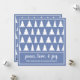 Send festive holiday cards featuring a white geometric tree pattern on a blue grey background. On a blue band across the bottom, it reads, "peace, love, & joy" in a white script font above a customizable name in a simple sans serif white font. Personalize it by adding a custom greeting, family name and/or the year in the sidebar. The tree pattern repeats on the back of the card.