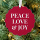 Peace Love Joy Red Christmas Holiday Ornament Card