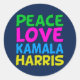 Cute Peace Love Kamala Harris stickers for a progressive democrat who loves fun, colourful political designs. Vote for Kamala for president in the 2024 election. A fun liberal design in bright colours.