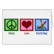 A peace sign, heart, and a kayak in the water. Peace Love Kayaking Card.