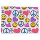 Peace, Love, Laugh, Smile, Live, pattern. With pink and purple hearts, yellow smiling and happy faces, and blue peace sign symbol with a light rose background. Helping you to stay cheerful, motivated, encouragement, inspiration, to have a great day. Surround yourself with positivity. Great for kids, girls, best friends, wife, girlfriend, sisters, aunt, grandmothers, mothers, children, and more.
