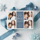 Modern typography based Hanukkah photo card features four of your favourite photos in a square format, with "Peace, Love and Light" centred in white hand lettered style typography. Personalize with your family name, individual names and/or your custom message.