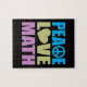 Peace Love Math...What else do you need in life? Perfect gift for any math lover! Whether you're a math teacher, a college student majoring in mathematics, a member of the math club, or just a math geek that loves equations, this design is for you! See our shop for more fun and unique Peace Love...shirts and gifts.