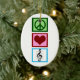 A cute personalized Christmas ornament gift for a musician with a peace sign, heart, and a musical symbol for a treble clef. Nice customized present for a singer or band geek.
