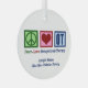 Peace Love Occupational Therapy Christmas ornament personalized with your own text for a pediatric therapist. A pretty OT gift with your beautiful custom text in blue.