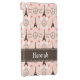 If you love paris, you'll adore this pink peace symbol, heart, flowers and Eiffel tower pattern in pink and brown with the words J'amie Paris on it. This Paris Eiffel Tower design can be personalized with your name on the PRINTED ribbon look design. Designed by Chrissy H. Studios, LLC. All Rights Reserved.