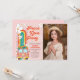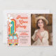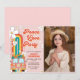 Peace Love Party Retro Rainbow 7th Birthday Photo Invitation