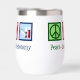 Un joli cadeau phlébotomiste avec un signe de paix, un coeur et des flacons de sang. Peace Love Flebotomy vin tumbler.