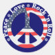 For 40 years there's been a saying that covers all that really matters in the world: Peace, Love, and Rock and Roll. We've got it with an American flag draped peace sign. Great on tshirt, mug, greeting card, and more.