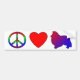 Spread the idea of peace and love, as well as your appreciation for the Shetland Sheepdog breed with our Peace, Love, and Sheltie Bumper Sticker. The peace symbol is a beautiful rainbow, the heart is red, and the dog breed's silhouette is red fading to blue. A powerful statement - on a stylish product!