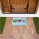 A peace sign heart, and someone skiing on the snowy slopes in winter.