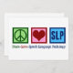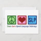 Peace Love Speech Language Pathology card. Cute addition to a SLP gift in bright, fun neon colours for a speech therapist who got a speech language pathologist degree and works with communication.