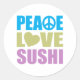 Peace Love Sushi...What else do you need in life? Perfect gift for any sushi addict. It doesn't matter if you're a trained sushi maker, you're a foodie blogger who loves to try out the latest sushi restaurants, you're an at home chef who loves to put your own spin on sushi recipes, or you love to go out for sushi with friends on girls night out...you're addicted to sushi! Funny gift idea for any sushi lover. Great for a sushi diva. Design features a heart and a peace sign. See our shop for more fun and unique Peace Love...shirts and gifts.