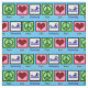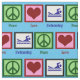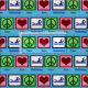 Peace signs, hearts, and swimming people on a pretty pool blue fabric. I love to swim and make cute things with pretty fabrics.